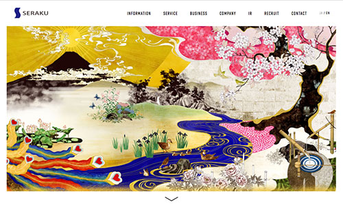 这是一家互联网机构,网站采用了双语言(日语+英文),以日式插画作为首屏页面,让首页拥有强大的视觉吸引力。网站的英文字体、数字没有使用系统自带,而是其它嵌入式字体,以视觉优先。