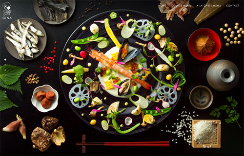 Gina 也是一个餐饮食品网站,这个首页的视觉离不开摄影师的功劳,漂亮的摆拍摄影让首页增添不少美感。
