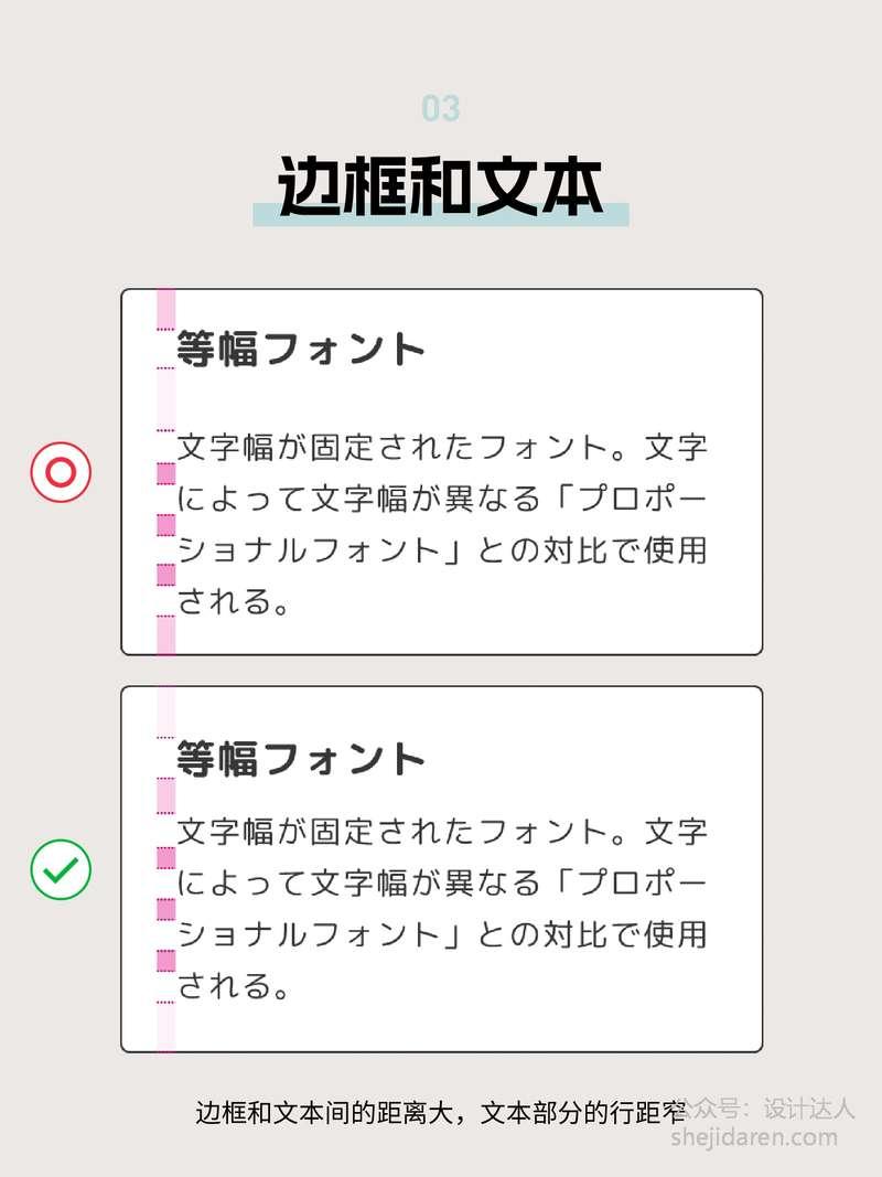 边框和文本之间的距离要大一点,这样能突出文本内容,让边框起到很好的装饰和界定作用。而文本部分的行距保持窄一点,让文本信息更集中。