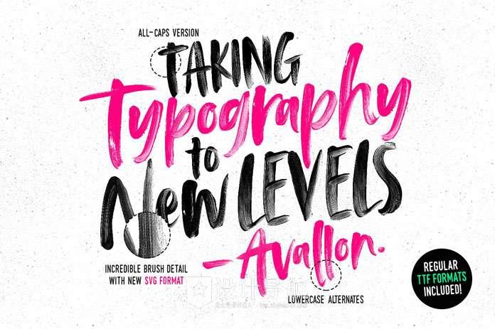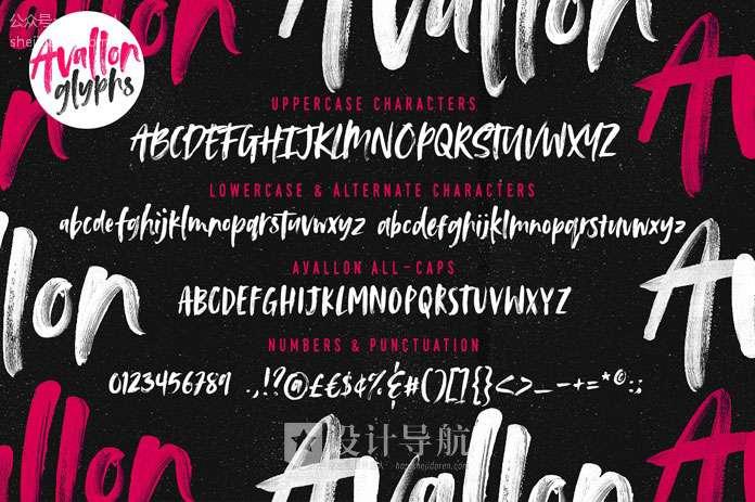 素材名称:【3009】Avallon手绘笔刷字体,OpenType-SVG字体格式