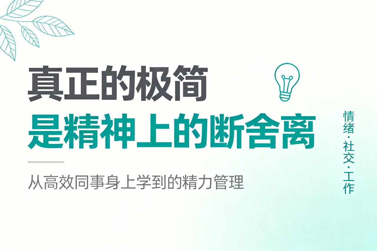最近注意到一位工作效率极高的同事她身上有种独特的「清爽感」情绪稳定、做事专注、社交高效,让我突然明白真正的极简不只是物质的精简,更是精神世界的断舍离。