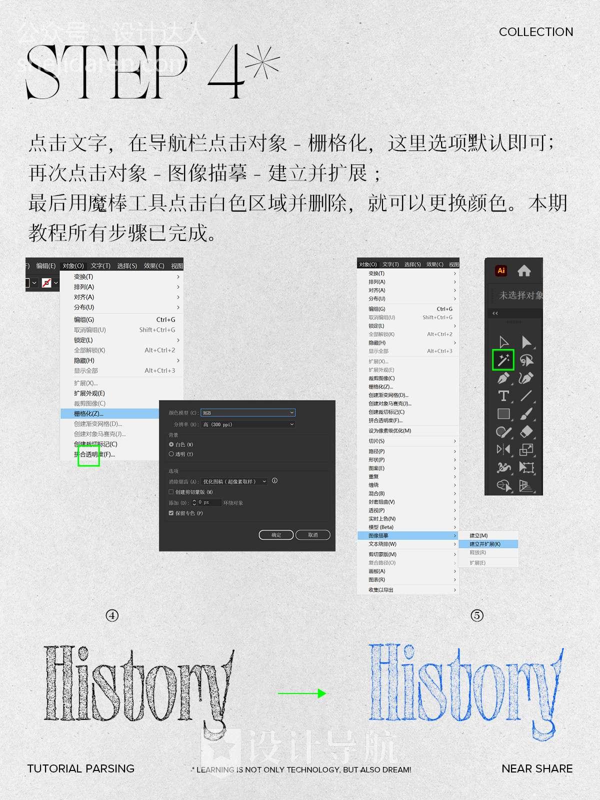 - 选中文字,在导航栏点击对象 – 栅格化,保持默认设置。
