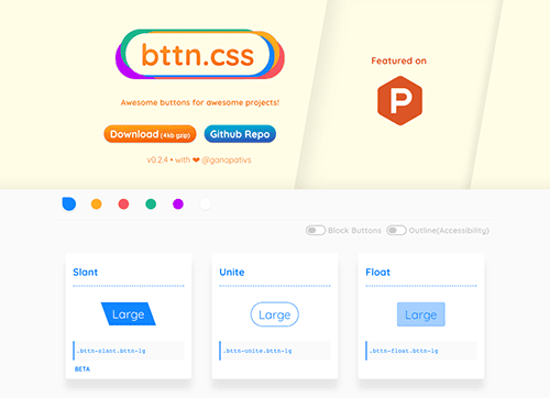 CSS 能实现很不多不同的样式,只有你想不到,没有做不到哦,今天为大家分享的 bttn.css 是一个专注分享网页按钮的样式库,设计师和前端人员可以参考这个设计,也能直接拿来使用。