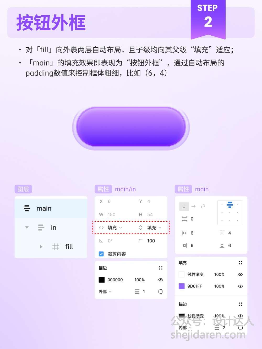 「main」的填充效果即表现为“按钮外框”,通过自动布局的padding数值来控制框体粗细,比如(6,4)