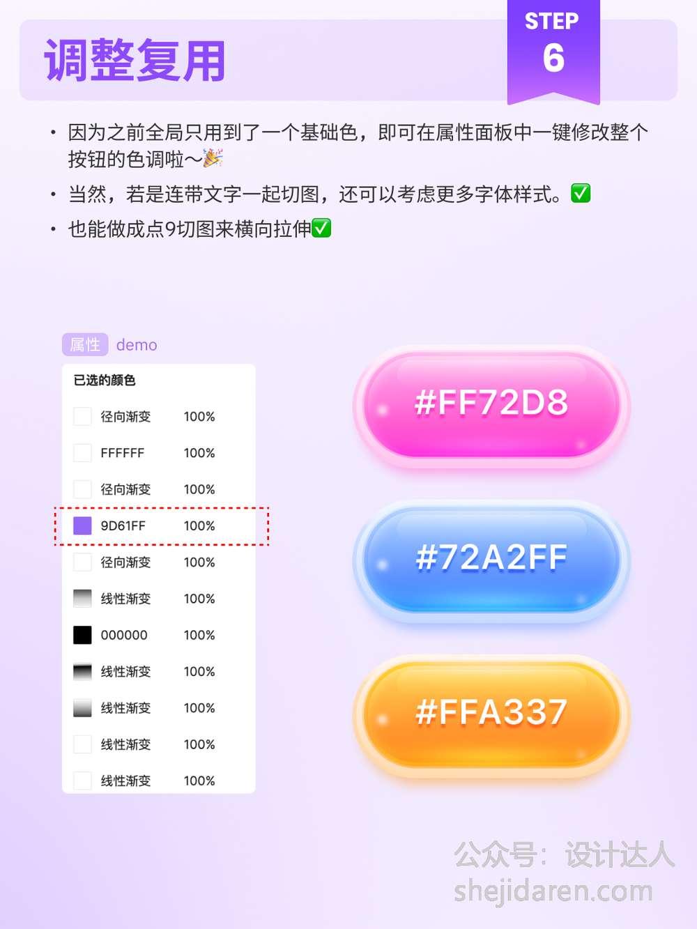因为之前全局只用到了一个基础色,即可在属性面板中一键修改整个按钮的色调啦~🎉
