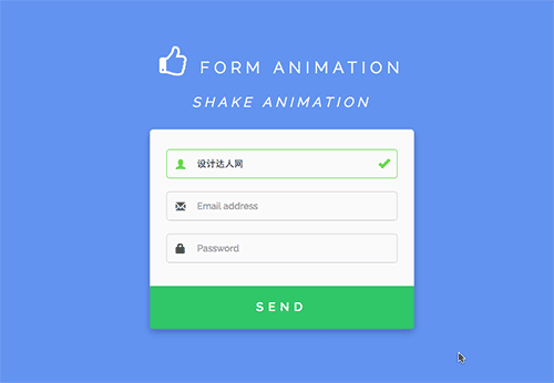 今天为大家分享的表单动画 jQuery 插件:Form Animatiom,我想大家看图就知道他作用是干什么了。主要作用就是当用户提交错误表单时,而触发动画提醒功能,这样会更加醒目,而动画效果友好,不会太过唐突。