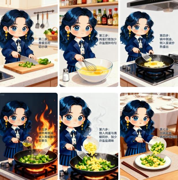 比如制作图文结合带有自己IP的青椒炒蛋教程(小短腿站在灶上了🤣):