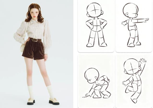 三视图最好是以标准站立的姿势,双手自然往下的正视图作为参考图。