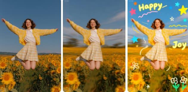背后变成高速镜头动态模糊的效果;整体更明亮,在人物周边加上童趣涂鸦和英文手绘,手绘装饰,整体呈现乐观积极快乐的氛围。