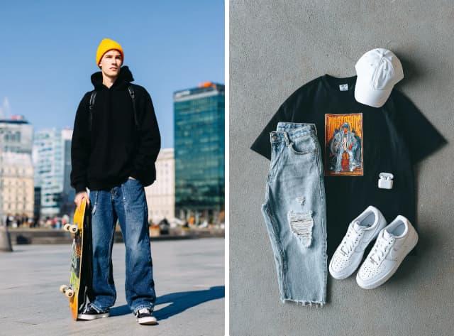 让图一男人换上图二的衣服,将滑板换成图三的小狗。