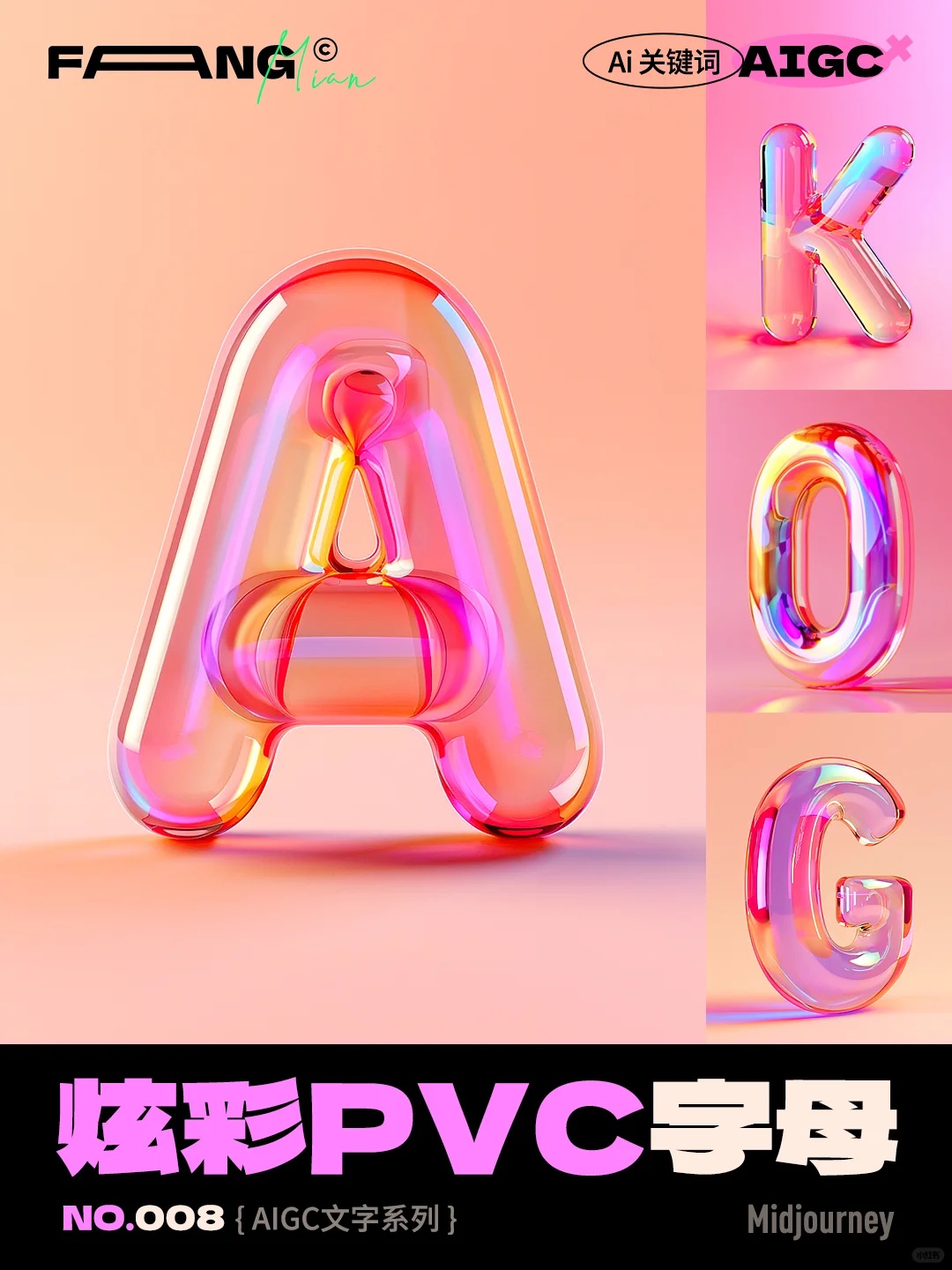 这段炫彩PVC字母的mj咒语,无论质感、光影、颜色还是场景都是绝绝子!无需垫图,咒语直出!!!