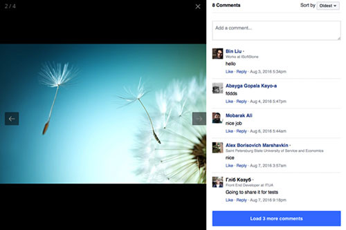 可以通过自定义 HTML 属性,增加Facebook留言模块,简直像 flick 一样,每张图片都可以单独留言,具体使用方法也很简单,请看官方 Doc 教程。