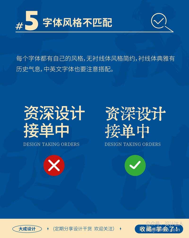 灾难现场:典雅的衬线体搭配狂野的手写体,像西装革履的绅士突然混搭运动裤,违和感爆棚!搭配法则: