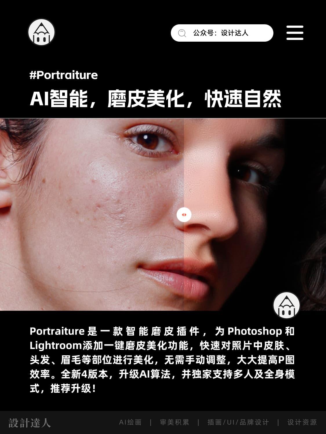 Portraiture插件全新升级!一键磨皮PS插件兼容WIN和MAC