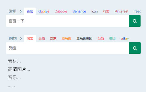 我希望这个搜索条可以搜索设计界最强的几个大站,如 Dribbble, Behance, Pinterest, 设计达人网, 然而这还不够,我还需要搜索免费高清图片、PSD 源文件、Photoshop 特别版!