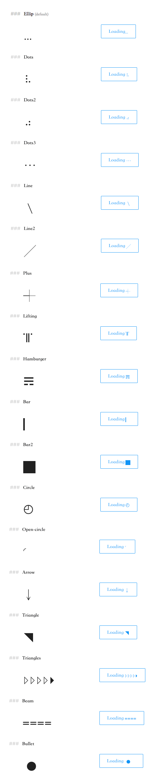 等待加载、加载中的在网页上是很常用的元素,实现方式也很多,其中直接用 GIF 动画、CSS sprites 等,而今天介绍的就是以纯 CSS + 纯字符实现的 loading加载效果,样式超级多,可选择一款应用到你的网页项目上吧。