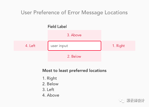 研究证明,内联形式的错误提示可以得到最佳的用户体验,同时这项研究还给上下左右四个方向排了优先级(如下图)。