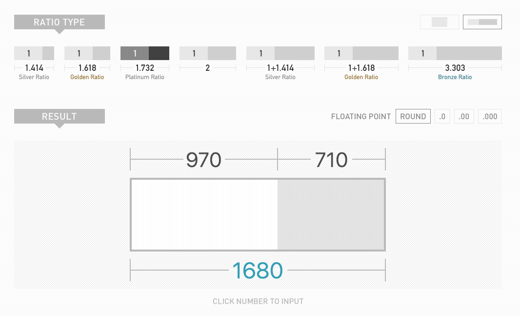 这个工具有黄金比例、白金比例、铂金比例以及青铜比例,设计师可以手动修改数值,就能自动换算,相当方便。